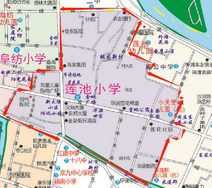 东至西城河,南至鑫泉路、临泉路(包括香格里拉东区),西至汝阴路,北至人民西路。