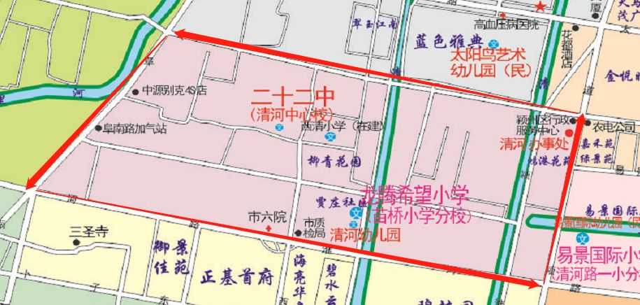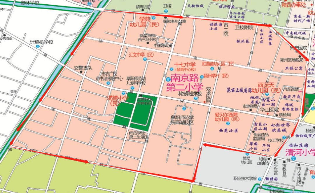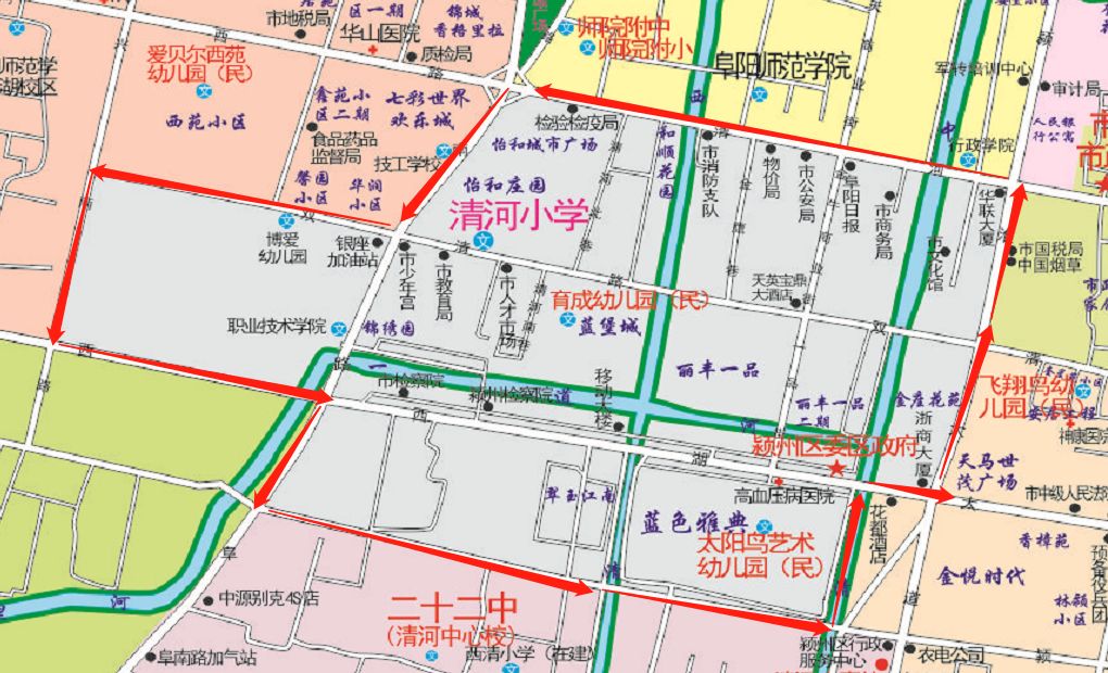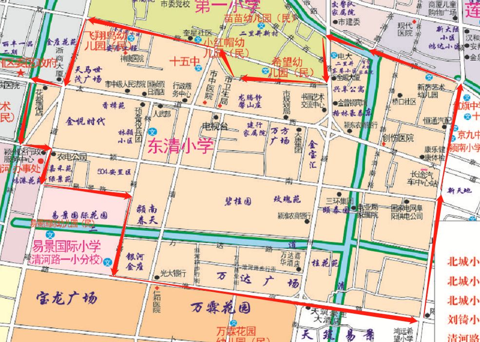 ③北至清河东路,西至颍淮大道,南至双清路、丹青路,东至颍州中路接双桥路。