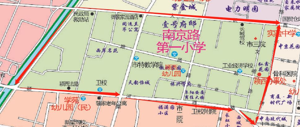 东至解放中路,南至颍河西路,西至西城墙路,北至炮铺街。
