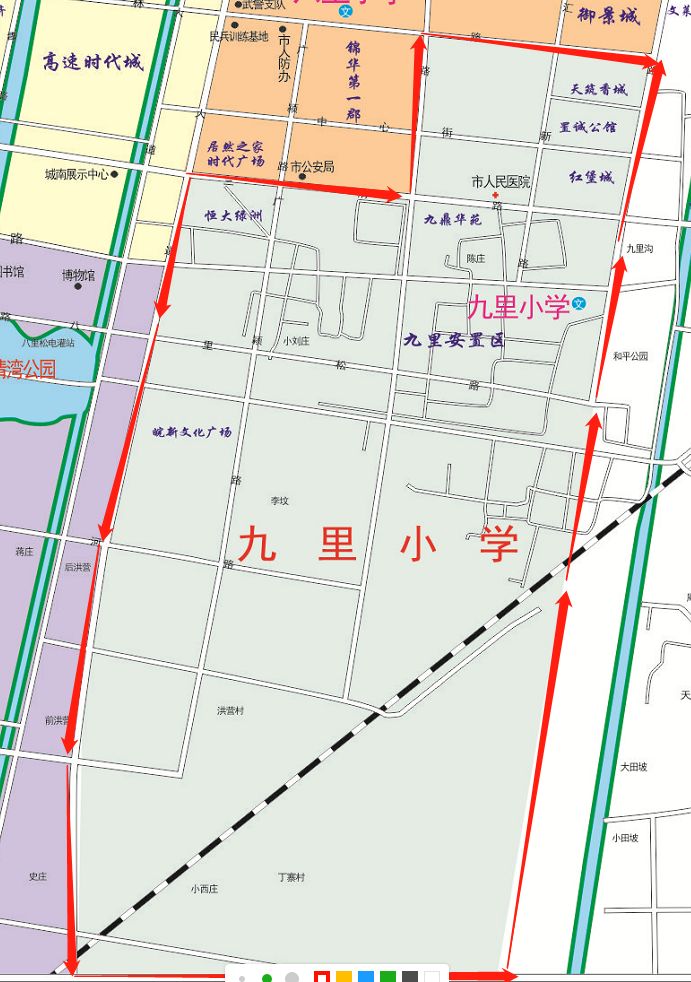 东至七里长沟,南至七里长沟,西至桃园东巷、周庄东巷、赵小庄,北至河滨东路。