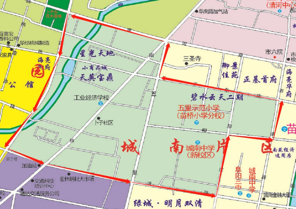 ①东至颍淮大道,北至清河东路,西至阜南路,南至颍南路;
