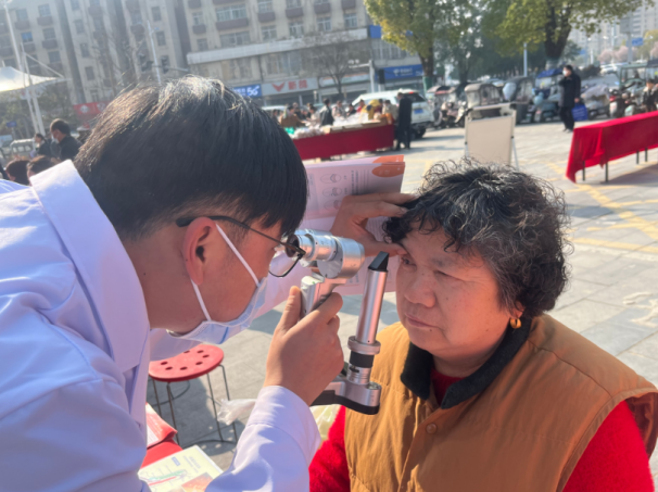 活动现场,阜阳爱尔眼科志愿服务队组建专业医护志愿小组,携带便携式视力检测仪、裂隙灯等设备有序开展服务。志愿医护人员耐心接待每一位群众,细致完成视力检测、眼表检查等项目,重点排查白内障、青光眼、干眼症等常见眼病,并结合春季用眼特点,为不同年龄段群众提供个性化护眼建议,用专业传递志愿温情。针对老年群体视力退化、青少年近视防控等突出问题,志愿队员还专门建立简易健康档案,标注检查结果和注意事项,方便群众后续跟进复查,切实将贴心服务落到细节处。