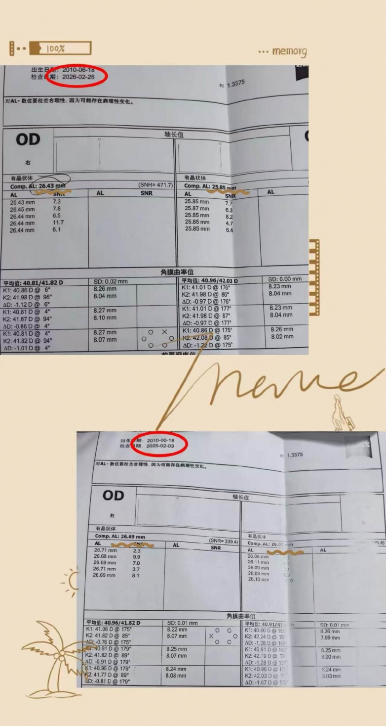 3. 实时监测:每3-6个月精准复查,动态跟踪眼轴和度数变化,一旦发现微小波动,立即优化方案,确保防控效果不打折扣。