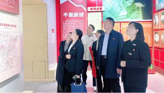 在刘邓大军千里跃进大别山纪念馆,党员们面向革命历史浮雕庄严肃立,默哀鞠躬,敬献花篮,深切缅怀为民族解放事业浴血奋战的革命先烈。随后,大家跟随讲解员走进展厅,通过历史文物、文献资料与珍贵影像,重温刘邓大军千里跃进大别山的战略壮举与烽火征程,深刻感悟革命先辈不畏牺牲、百折不挠的革命意志。参观结束后,全体党员重温入党誓词,以铿锵誓言坚定理想信念,将红色精神融入医疗服务的初心使命。